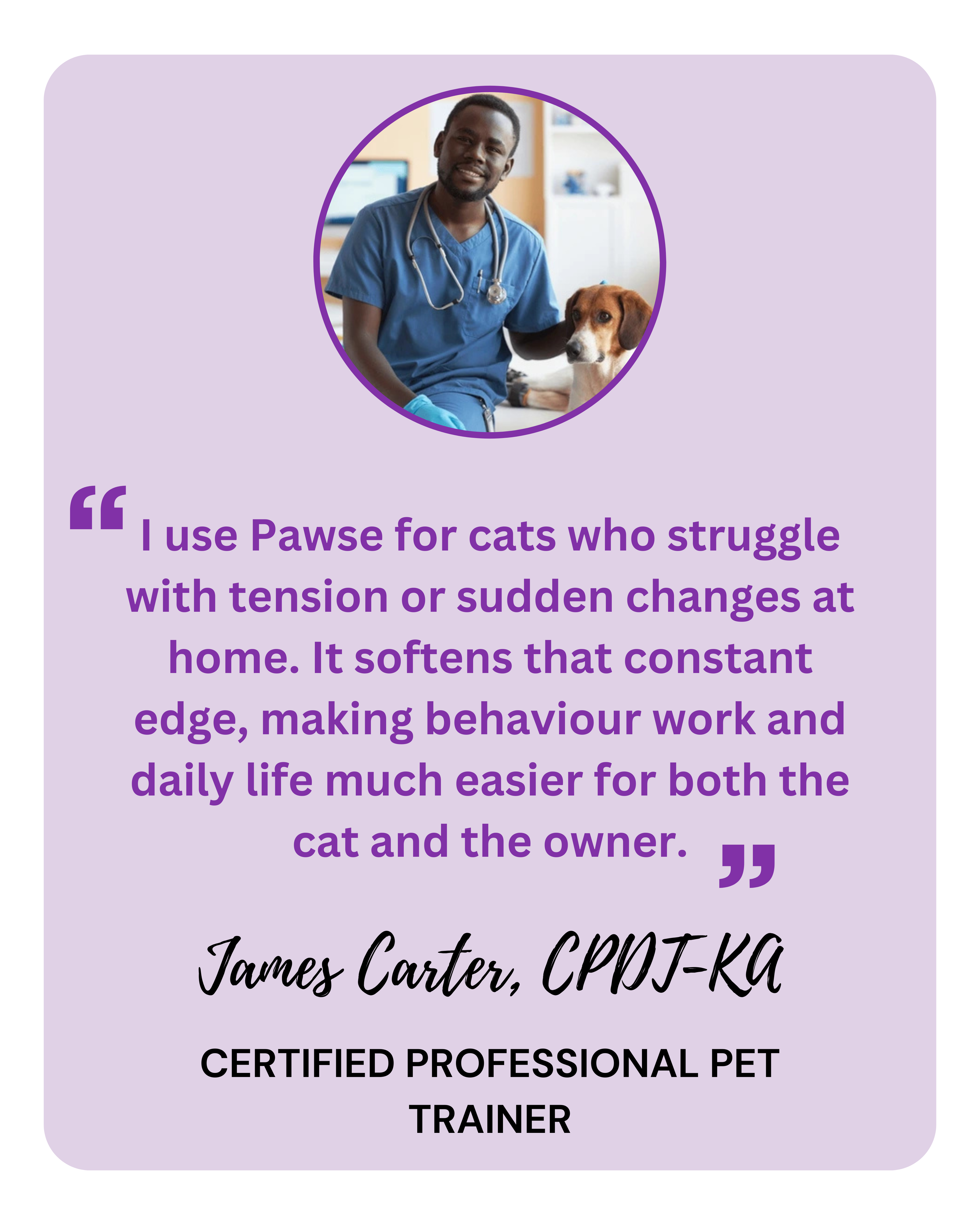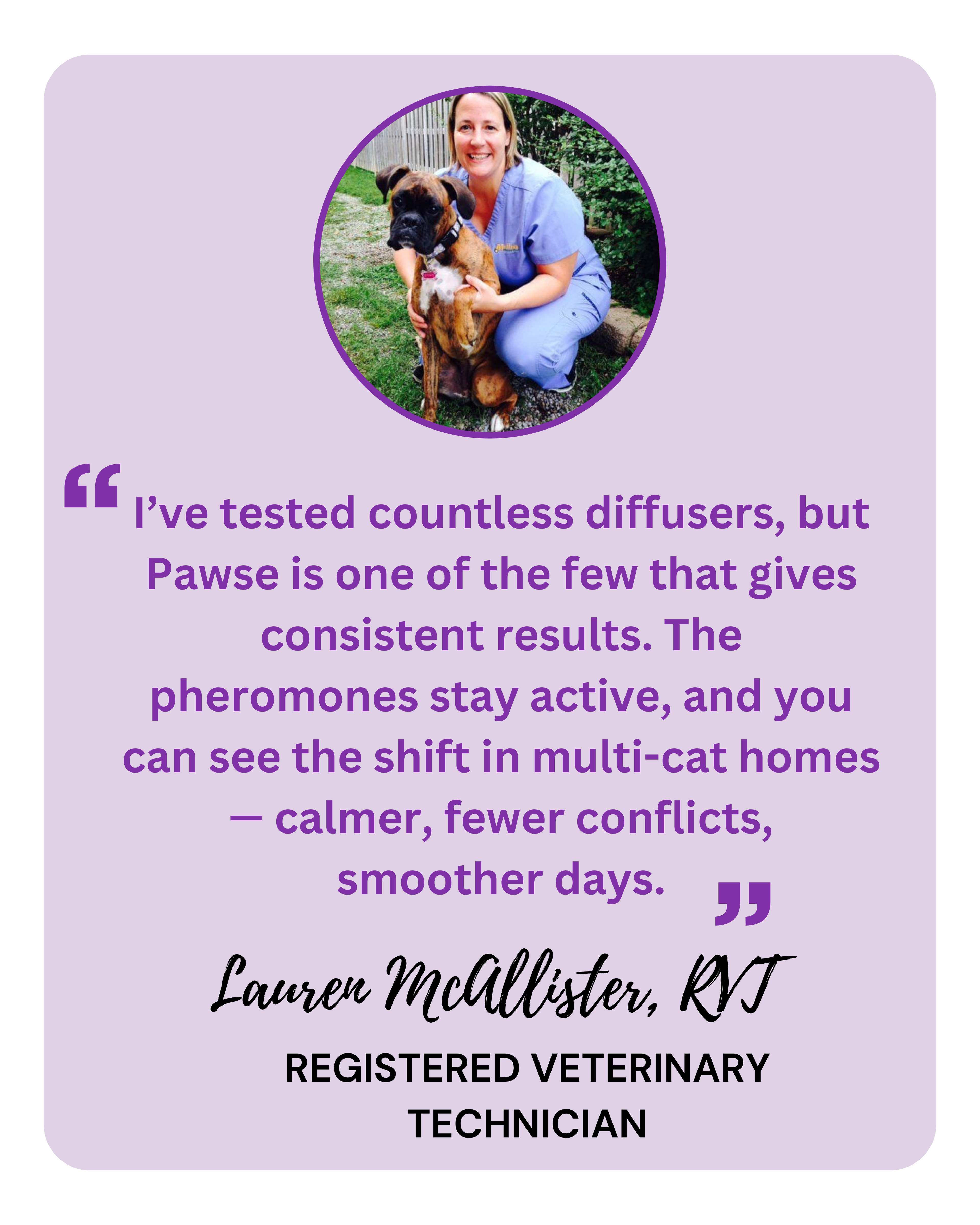 Vet technicians and behaviorists recommend pheromone therapy as a natural alternative to medication. Pawse delivers that same professional-grade solution safely at home — no drugs, just proven calm.